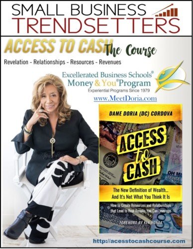 That is why the Access to Cash Course was created for any entrepreneur, business owner (big or small), run a foundation / non-profit, a student getting ready to decide on a future, or an employee that is looking at the possibility of building their own business, this Course will support them in seeing what it takes to go through a business success model, that has been used for over 40 years by millions around the world to create profitable businesses which add value to humanity. Cordova wanted to make sure this Course is presented in an informal, simple, and conversational style. Doria Cordova emphasized, “Be sure not to let these tools’ simplicity fool you into believing that they are just for building small businesses only – empires have been built based on these teachings. Once people learn the “patterns of thinking,” they will start seeing them everywhere.”